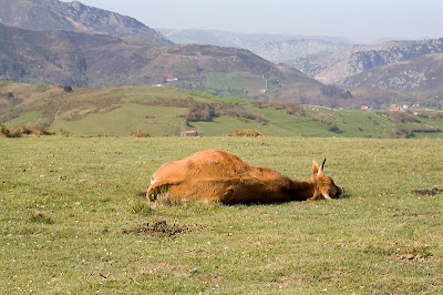 Vollgefressene Kuh, die sich in die Sonne gelegt hat und aufs Meer guckt, das hinten im Dunst verschwimmt, falls ihr nicht schon die Augen zugefallen sind: